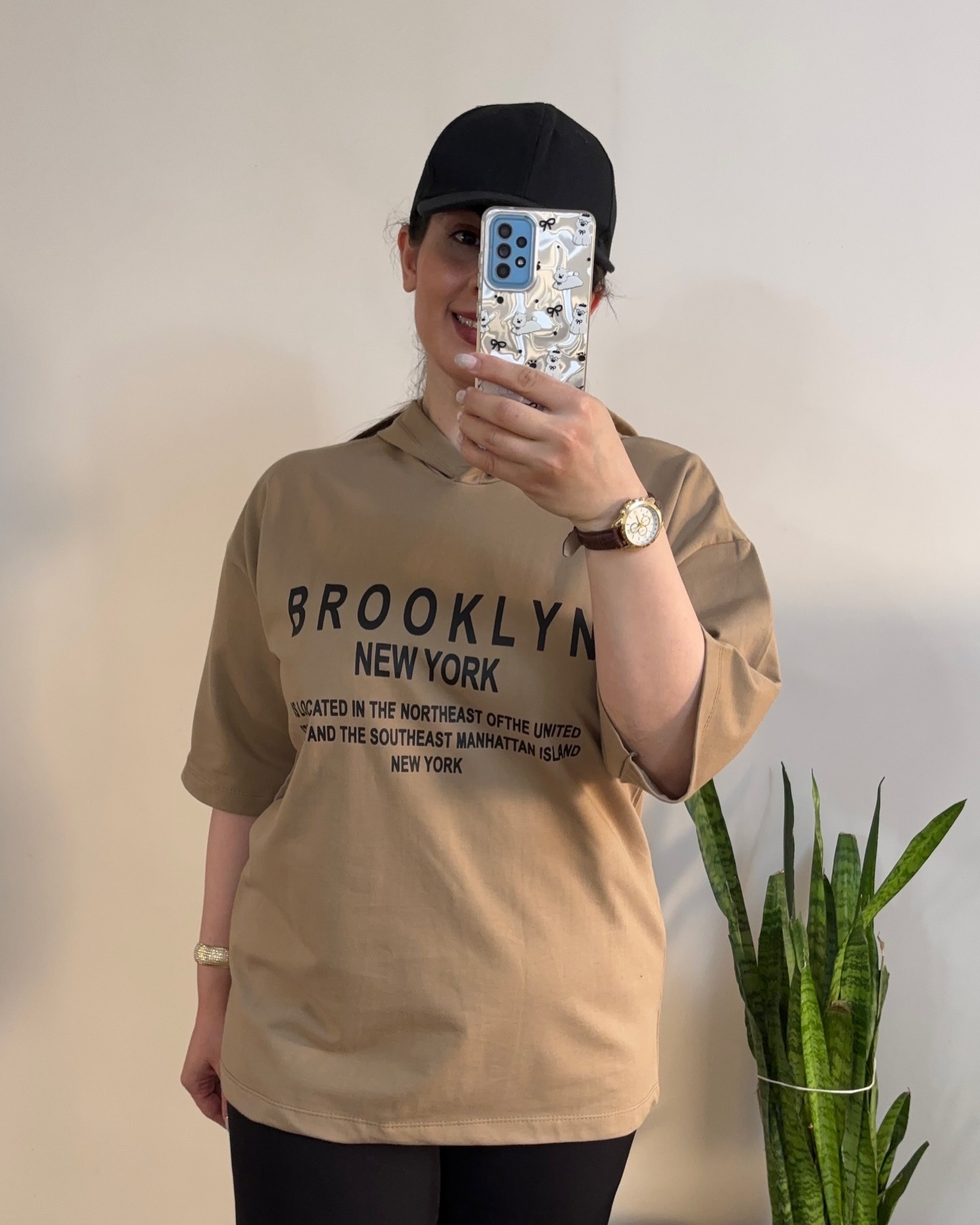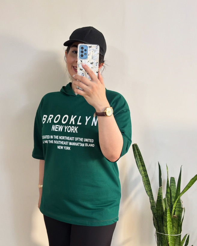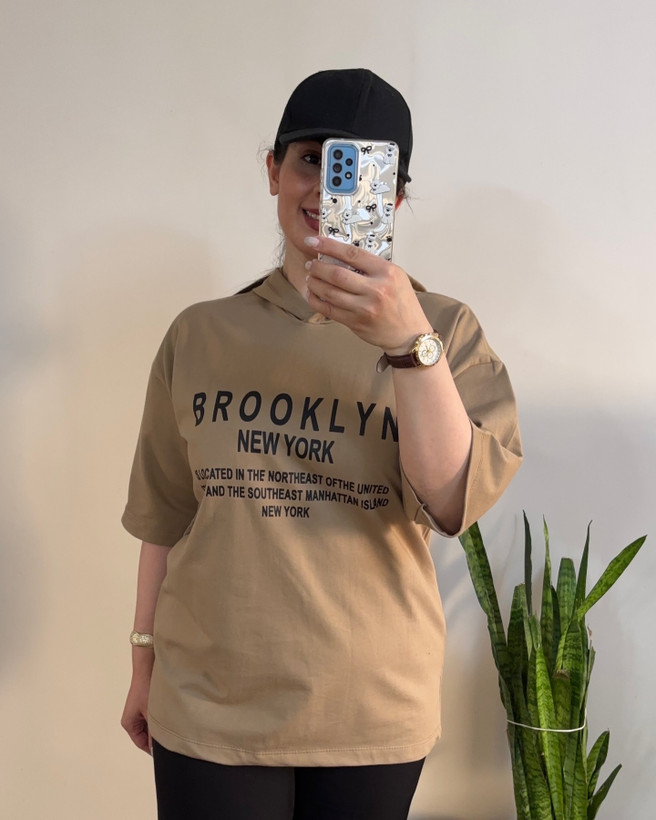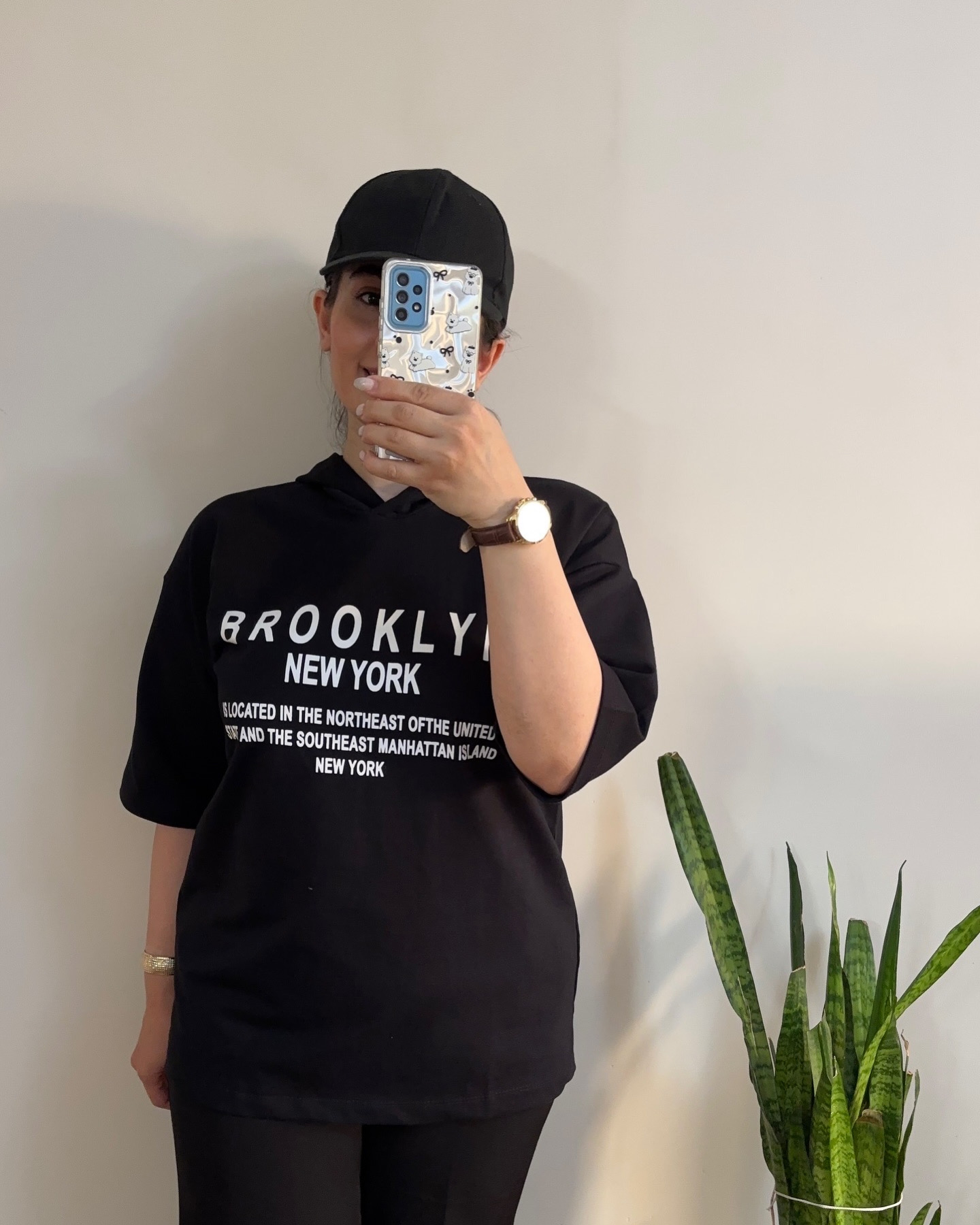 🔴تیشرت باکسی کلاهدار آستین سه ربع