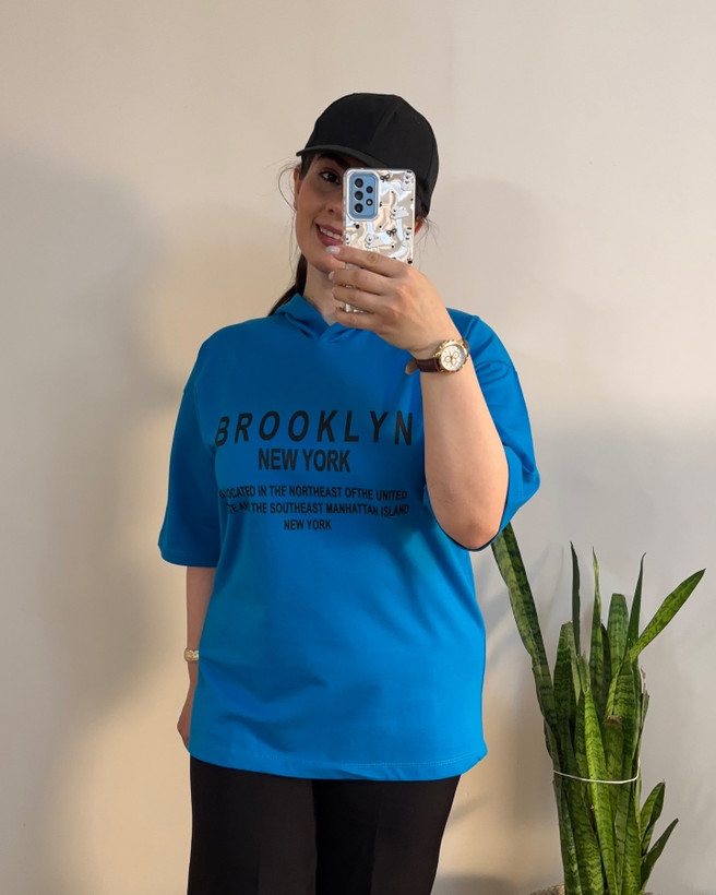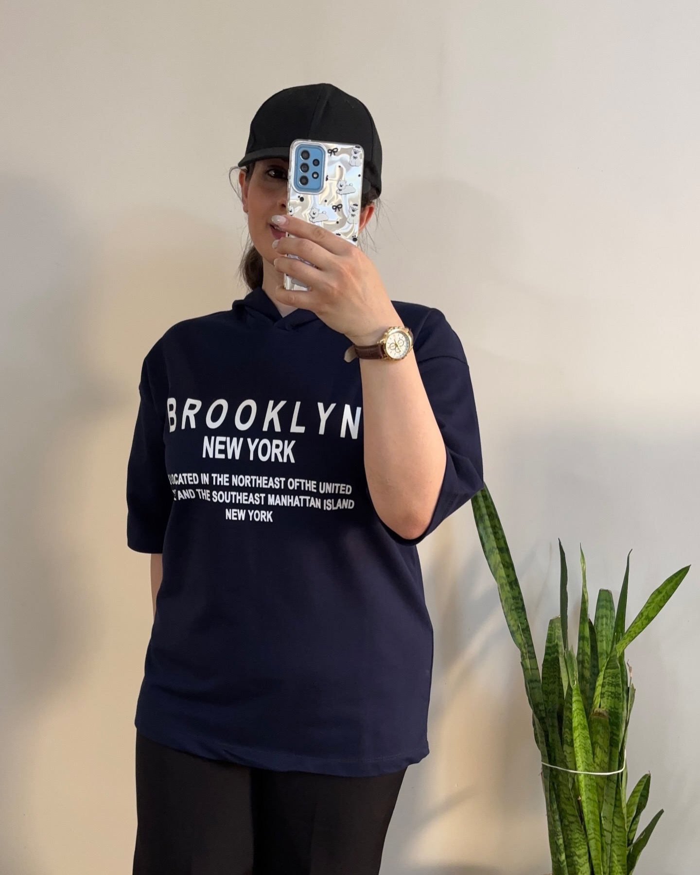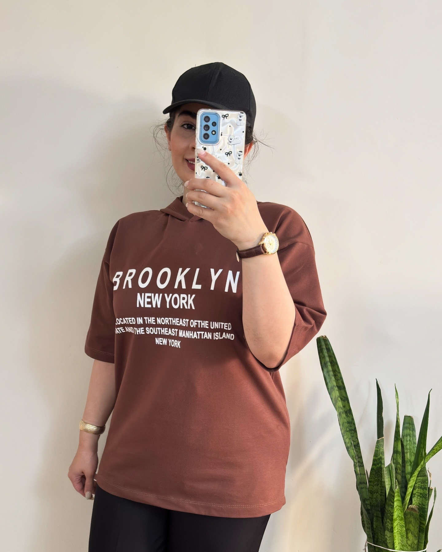 🔴تیشرت باکسی کلاهدار آستین سه ربع