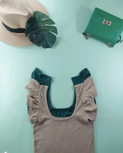 کراپ تاپ آستین پروانه ای یقه خشتی